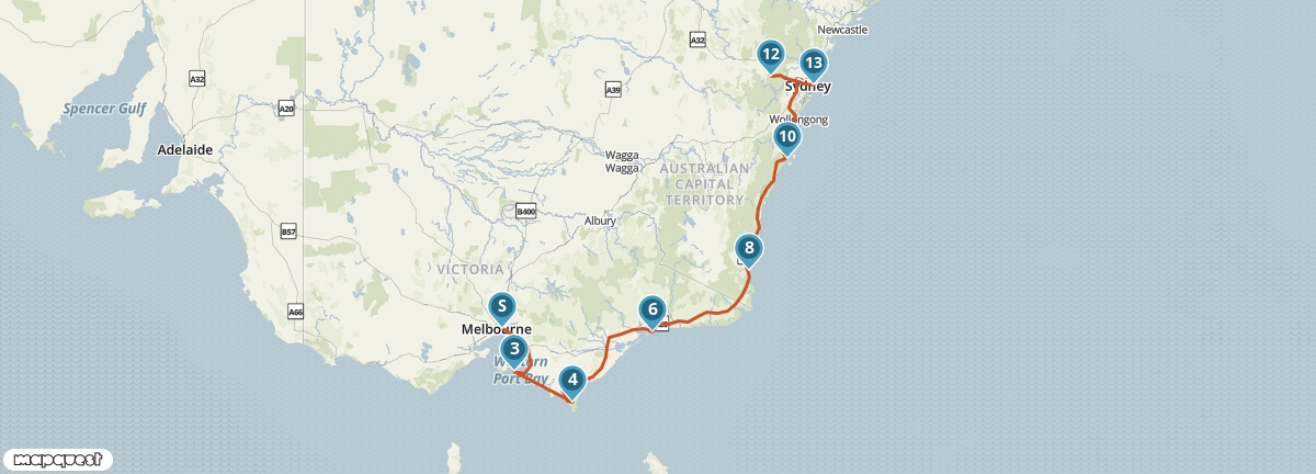 Deze autoreis van Sydney naar Melbourne laat je het beste van de Australische zuidoostkust ervaren. Je laat de stad achter je en volgt een route vol stranden, kliffen en nationale parken. Onderweg stop je in ontspannen kustplaatsen, wandel je langs ruige zeegezichten en spot je wildlife in de bush. Elke dag brengt een ander landschap — van helderblauwe baaien tot stille bossen — terwijl je in je eigen tempo zuidwaarts trekt richting Melbourne.