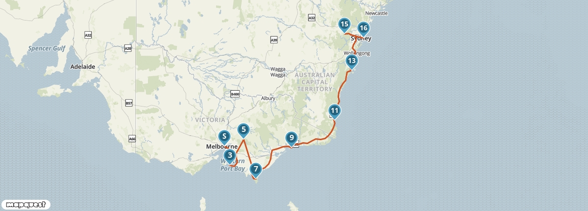 Deze autoreis van Sydney naar Melbourne laat je het beste van de Australische zuidoostkust ervaren. Je laat de stad achter je en volgt een route vol stranden, kliffen en nationale parken. Onderweg stop je in ontspannen kustplaatsen, wandel je langs ruige zeegezichten en spot je wildlife in de bush. Elke dag brengt een ander landschap — van helderblauwe baaien tot stille bossen — terwijl je in je eigen tempo zuidwaarts trekt richting Melbourne.