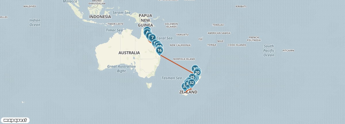 Naar de andere kant van de wereld reizen en twee vliegen in 1 klap vangen. Zowel Australië als Nieuw-Zeeland bieden zo veel moois dat je ook makkelijk 4 tot 5 weken in één land kunt doorbrengen. Maar zou je in deze once-in-a-lifetime ervaring beide landen willen bezoeken dan kan dat ook. Je beleeft de ruige natuur van het Zuidereiland van Nieuw-Zeeland, maar ook de geisers en vulkanen van het Noordereiland. Met een vlucht tussen Auckland en Brisbane steek je de oceaan over om de goudgele stranden van Queensland te beleven. Maak een boottocht naar Fraser Island en bezoek de prachtige Whitsunday Islands en het Great Barrier Reef.
