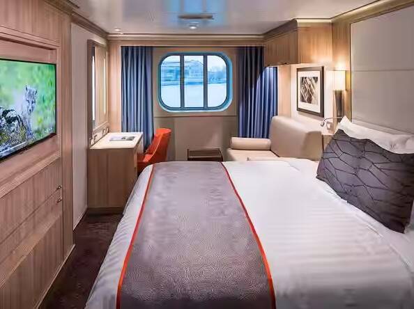 De comfortabele binnenhut van Holland America Line is de meest voordelige keuze. Dit type hut heeft geen ramen, maar biedt alle voorzieningen die je nodig hebt: een heerlijk Mariner's Dream-bed, een eigen badkamer en comfortabele voorzieningen.