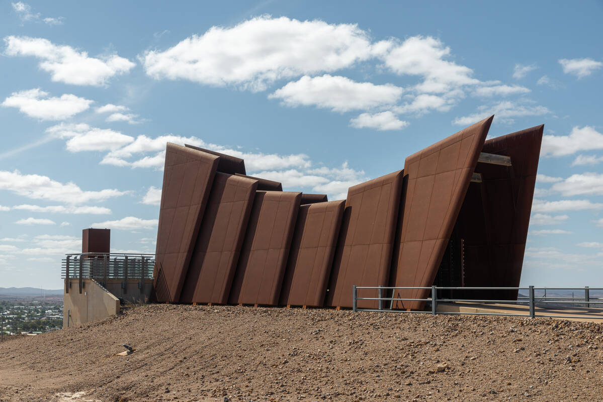 Boven de stad rijst het Line of Lode Miners Memorial op. Je staat hier hoog op de heuvelrug en kijkt uit over Broken Hill en het omringende outbacklandschap. De plek herdenkt mijnwerkers die hun leven verloren en laat tegelijk zien hoe uitgestrekt en leeg de omgeving aanvoelt.