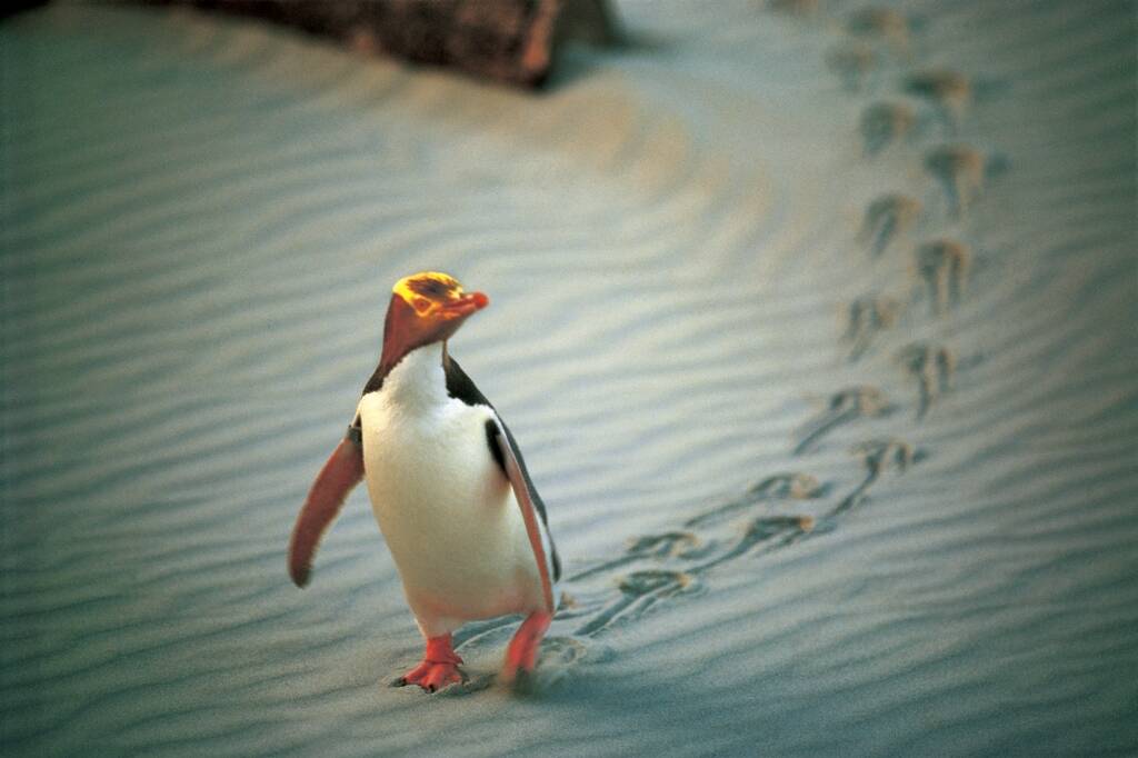 Net buiten Oamaru ligt Bushy Beach, niet direct een strand om te gaan zwemmen en zonnebaden, want tussen 15:00 en 9:00 is dit strand van de geeloogpinguïn. Deze zeldzame Hoiho komt hier aan land om te broeden. Boven het strand loopt een wandelpad met een aantal uitkijkplekken en een uitkijkhut. Vrijwilligers staan hier vaak om je een pinguïn te wijzen of om je meer te vertellen over deze dieren. Op het strand liggen ook zeehonden en zeeleeuwen.