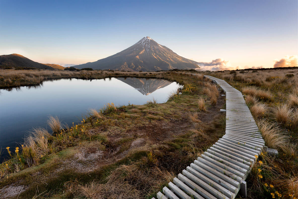 Te Papa-Kura-o-Taranaki ligt aan de westkust van het Noordereiland en is de plek waar natuur, cultuur en geschiedenis samenkomen. Het landschap draait om Taranaki Maunga, een bijna perfect symmetrische vulkaan van ruim 2500m hoog, die vanuit elke hoek domineert. Uitgangspunt voor dit Nationale Park is het nabijgelegen stadje New Plymouth. Op korte afstand sta je op de flanken van deze berg en beginnen diverse wandelroutes.