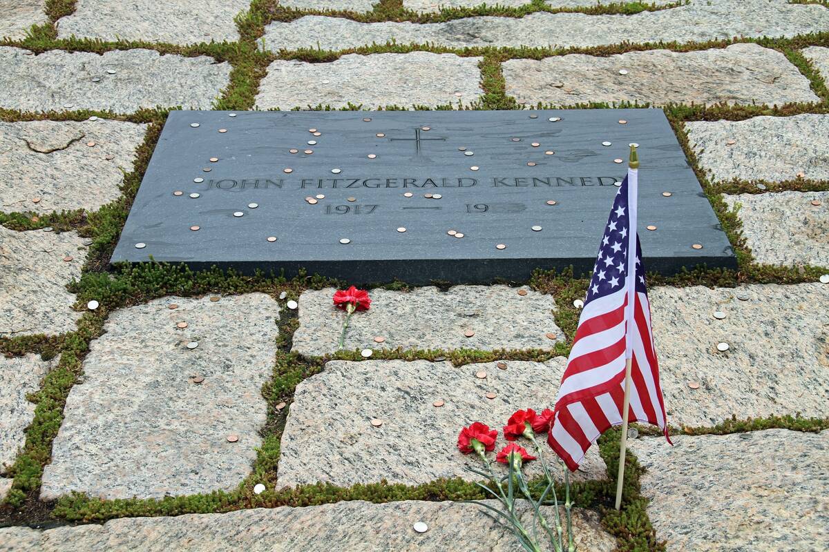 President John F. Kennedy ligt begraven op het Arlington National Cemetery in Virginia, vlak bij het Pentagon, alwaar de eeuwige vlam brandt voor de jonggestorven president.