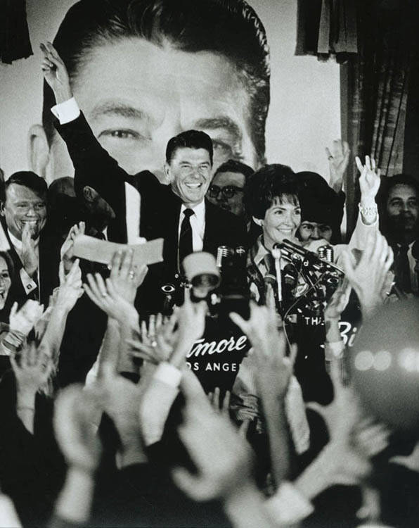 In 1962 werd Reagan een officieel lid van de Republikeinse partij. Hij ging zich fulltime op de politiek storten. In 1965 besloot een groep prominente conservatieven uit Californië, die zich afzetten tegen verandering en tradities in stand wilden houden, dat Reagan zich kandidaat moest stellen voor het gouverneurschap van Californië. Reagan kreeg financiële steun, zette een goede campagne op en won met gemak de verkiezingen. Hij streed tegen de democratische gouverneur Edmund G. Brown en won met een marge van één miljoen stemmen. Reagan nam onmiddellijk drastische maatregelen. Hij sneed in de begroting van de staat en ging bezuinigen. Hij werd in 1970 herkozen als gouverneur en verwierf status vanwege zijn goede financiële management en zijn hervormingen.